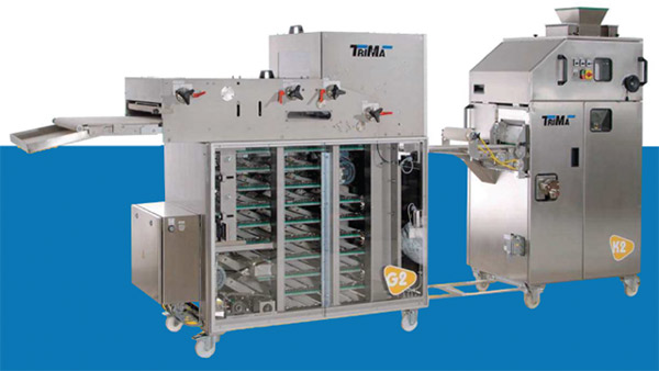 Ciabata (Akdeniz Ekmeği) ve kare rol ekmeği üretimi için tasarlanmış tam otomatik Trima Vier tek kişi ile opere edilebilir.